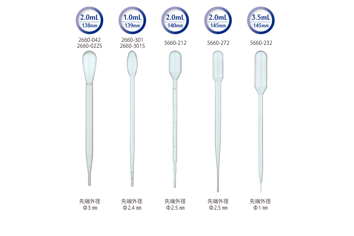 | 5660-232 | 移液管 | 3.5 毫升 | 145 毫米 | 1,000 瓶(50 瓶×20 袋) | 39,000 日元 |