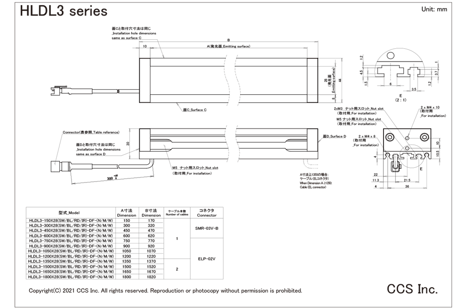 | 适合规格 | CE,UKCA,RoHS IEC 62471 HLDL3-150X28SW-DF-N:风险适度 HLDL3-150X28SW-DF-M:低风险 HLDL3-150X28SW-DF-W:低风险 |