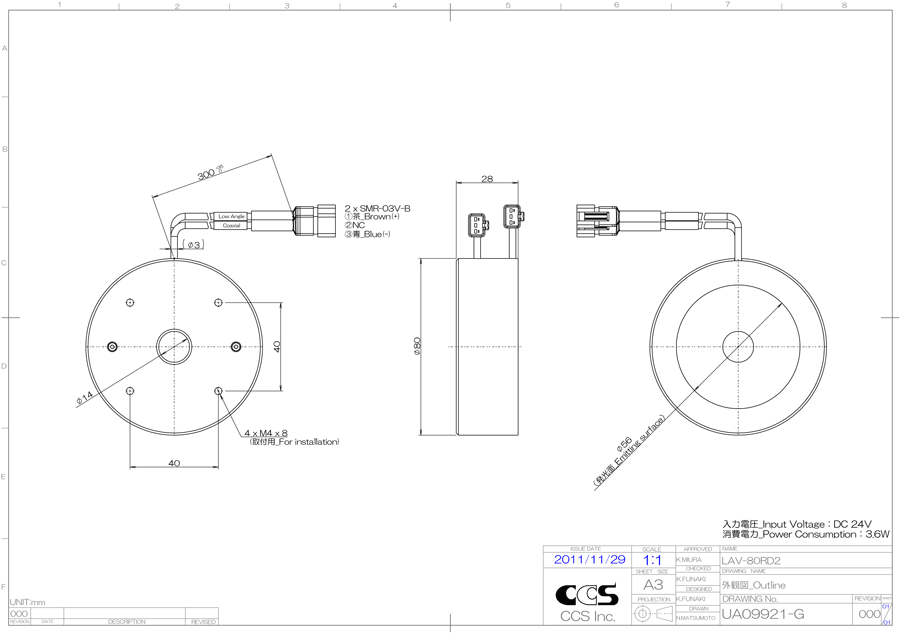 | 使用温湿度 | Temperature: 0 to 40°C, Humidity: 20 to 85%RH (no condensation) |