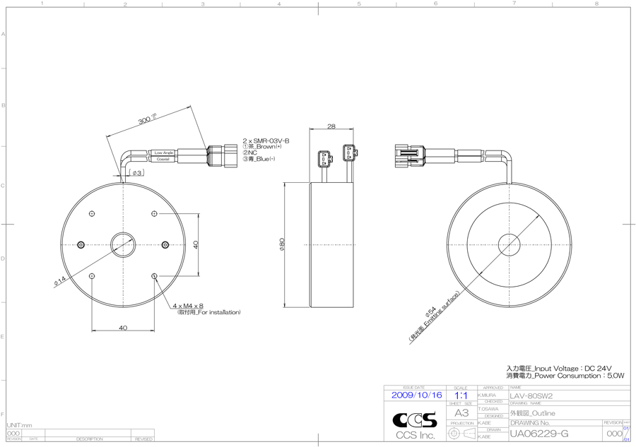 | 消耗功率 | 5.0 W max. |