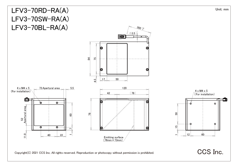 日本CCS西西斯 同轴光源 LFV3-70BL-RA(A)