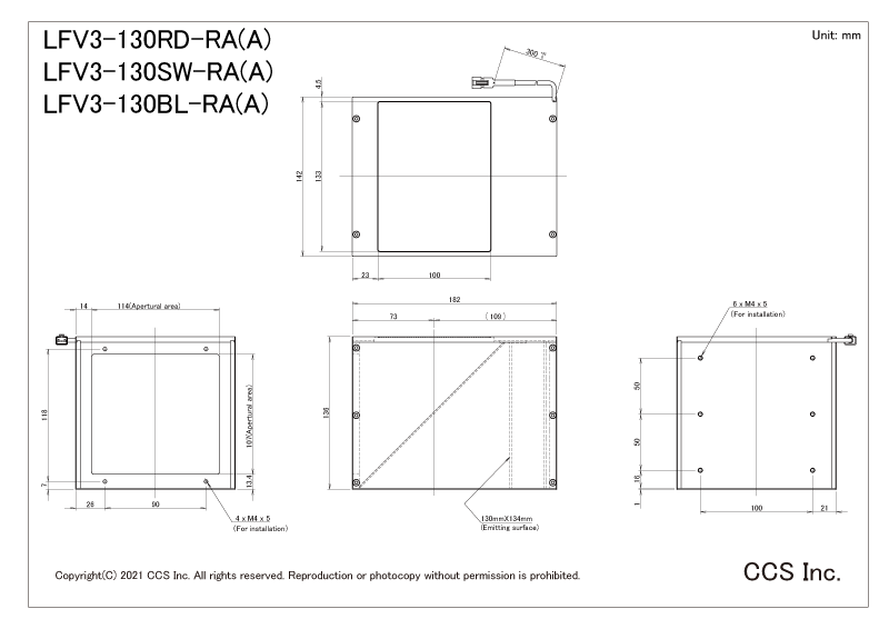 | 消耗功率 | LFV3-130RD-RA(A) : Contact us LFV3-130SW-RA(A) : 46 W max. LFV3-130BL-RA(A) : Contact u |