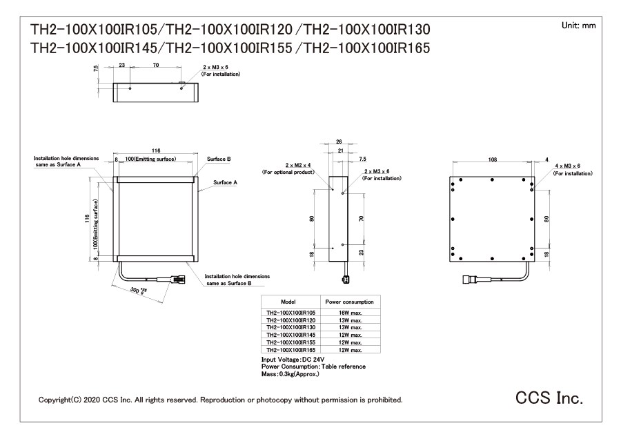日本CCS西西斯 红外光源 TH2-100X100IR165