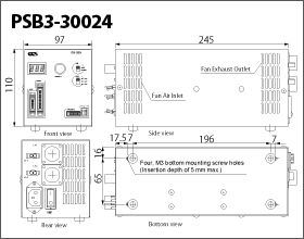 | 外部控制端口 | Parallel communications connector (20-pin MIL-C-83503 compliant), ON/OFF input connector (10-pin MIL-C-83503 compliant), and EIA-485 communications/analog input connector (e-CON compliant) |