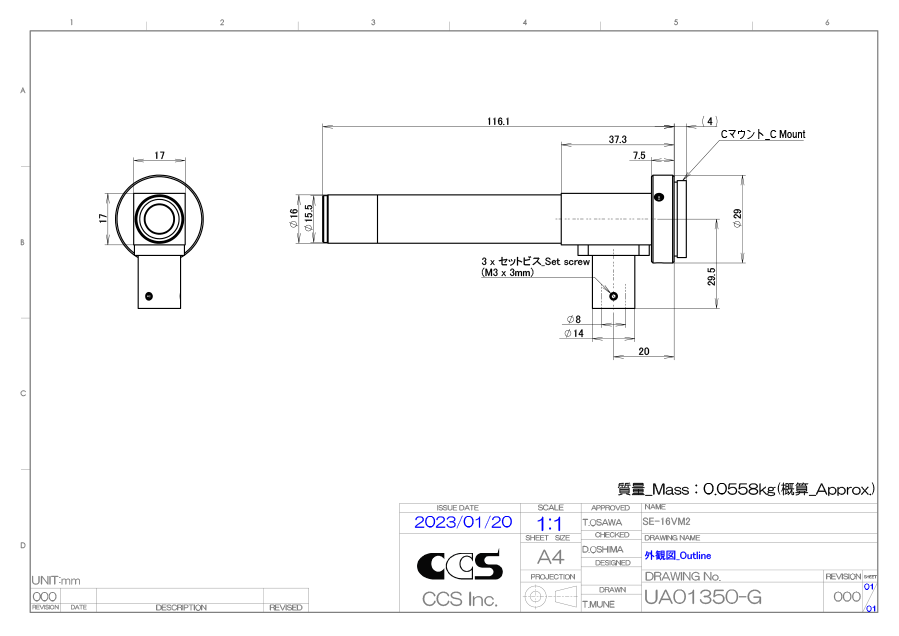 | 备注 | Coaxial type. The depth of field is obtained with 40 μm permissible circle of confusion. The resolving power was obtained at a wavelength of 550 nm. These specifications are numeric values based on optical design. Actual values will vary with physical factors such as the assembly accuracy. |