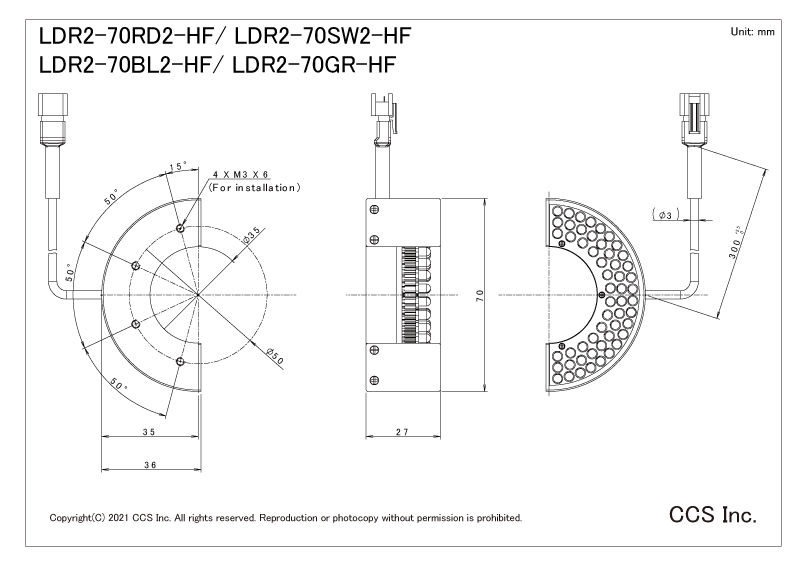 | 消耗功率 | Red: Contact us White: 3.5 W max. Blue: 3.5 W max. Green: Contact us |
