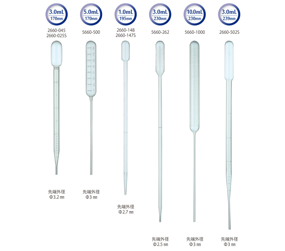 | 5660-262 | 移液管 | 3.0 毫升 | 230 毫米 | 400 瓶 (1 袋) | 6,300 日元 | |