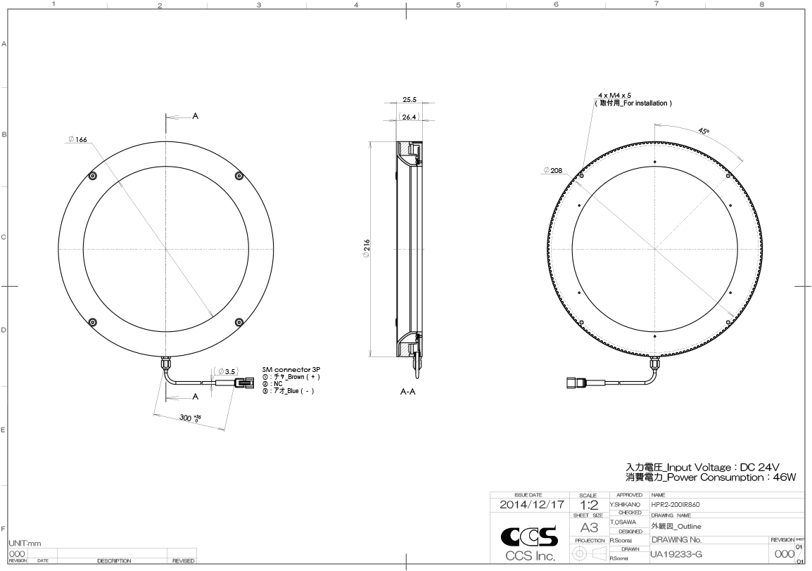 日本CCS西西斯 环型光源 HPR2-200IR860日本CCS西西斯 环型光源 HPR2-200IR860产品详细信息LED发光颜色Infrared峰值发光波长860 nm typ.外观尺寸Outer diameter 216 mm, Inner diameter 166 mm, Height 26.4 mm输入电压24VDC消耗功率46 W max.极性, 信号1: (+), 2: …
