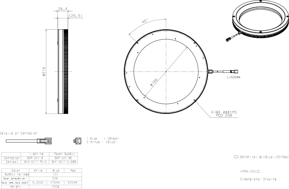 日本CCS西西斯 环型光源 HPRM-200SW日本CCS西西斯 环型光源 HPRM-200SW产品详细信息LED发光颜色White相关色温6,500 K typ.外观尺寸Outer diameter 216 mm, Inner diameter 166 mm, Height 26.4 mm输入电压12 VDC消耗功率30 W max.极性, 信号1: ( + ) , 2: ( - )线缆…
