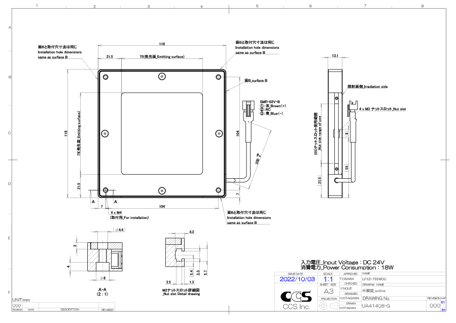 日本CCS西西斯 平面光源 LFX3-75SW(A)