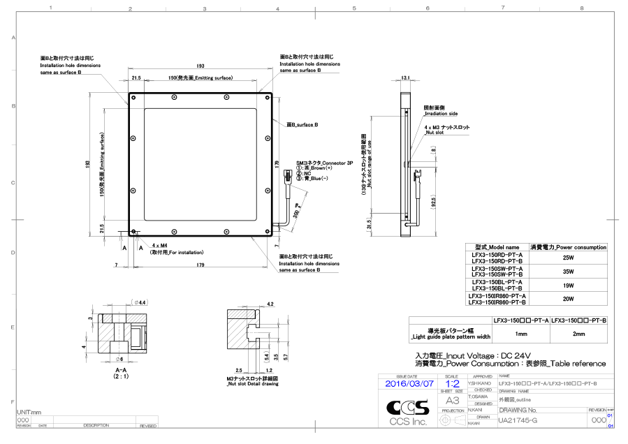 日本CCS西西斯 平面光源 LFX3-150RD-PT-B