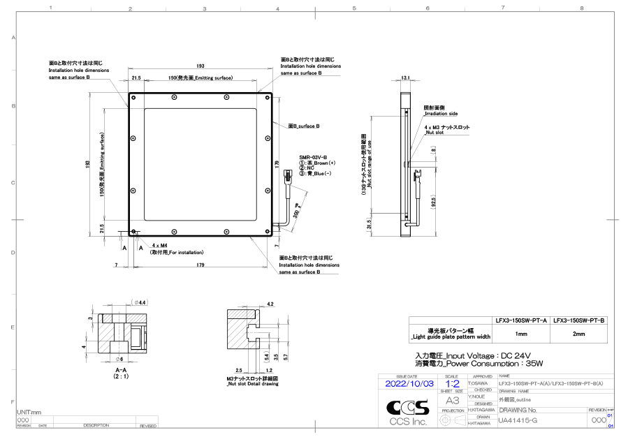 日本CCS西西斯 平面光源 LFX3-150SW-PT-B(A)