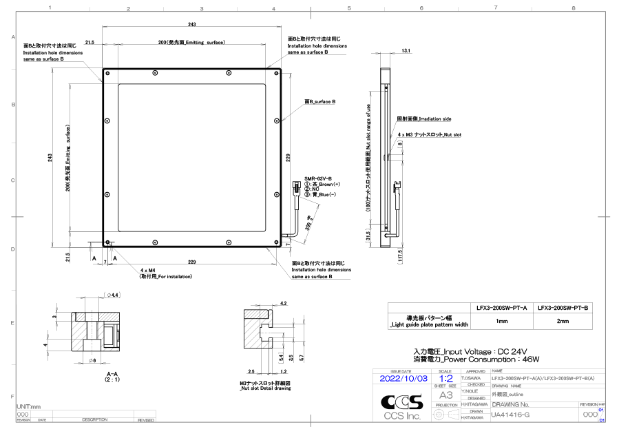 日本CCS西西斯 平面光源 LFX3-200SW-PT-A(A)