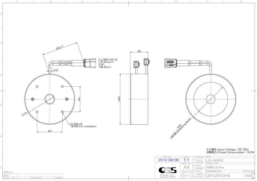 | 使用温湿度 | Temperature: 0 to 40°C, Humidity: 20 to 85%RH (no condensation) |