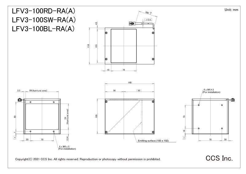 | 消耗功率 | LFV3-100RD-RA(A) : 22 W max. LFV3-100SW-RA(A) : 27 W max. LFV3-100BL-RA(A) : 27 W max. |
