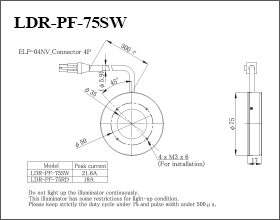 日本CCS西西斯 超亮频闪光源 LDR-PF-75SW日本CCS西西斯 超亮频闪光源 LDR-PF-75SW产品详细信息LED发光颜色White相关色温7,500 K typ.外观尺寸Outer dia.: Φ75 mm, Inner dia.: Φ35 mm, Height: 17 mm峰值电流21.6 A输入电压48 VDC max.极性, 信号1: (+), 2: (+…