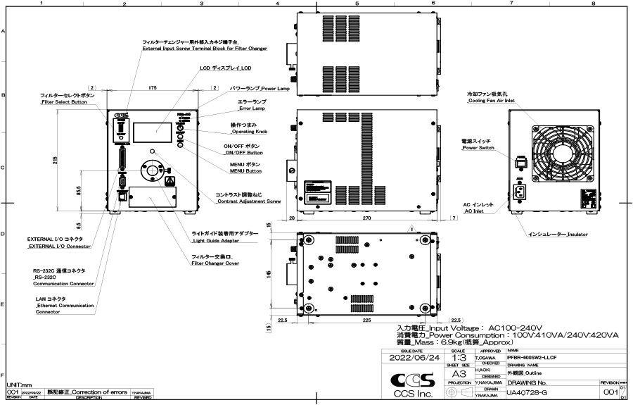 | 消耗功率 | 410 VA at 100 V input, 420 VA at 240 V input |