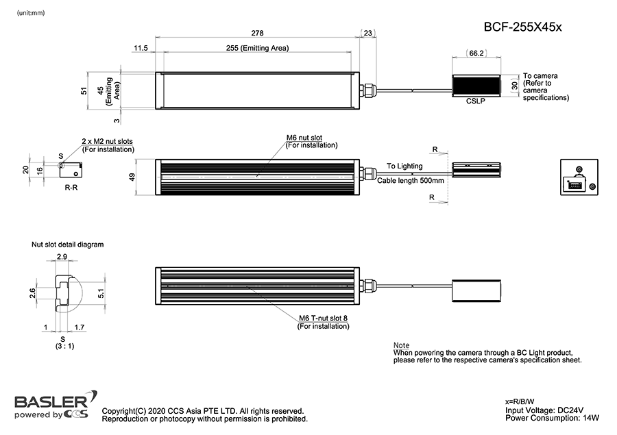 | 外观尺寸 | W 278 mm x D 51 mm x H 49 mm |