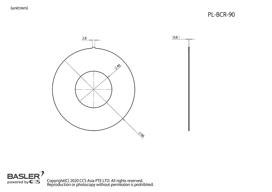 | 外观尺寸 | Outer diameter 90 mm x Inner diameter 40 mm x Height 0.8 mm |