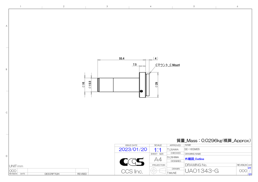 日本CCS西西斯 微距镜头 SE-16SM05日本CCS西西斯 微距镜头 SE-16SM05产品详细信息光学倍率0.5 xWD104 mm景深1880 μm光学分辨率7.9 μmNA0.043有效F值(Fe)5.9物像间距离177 mm镜头外径(镜筒)φ16相机支架C mount最大适用图像传感器尺寸1/2 inch视野(图像传感器尺…