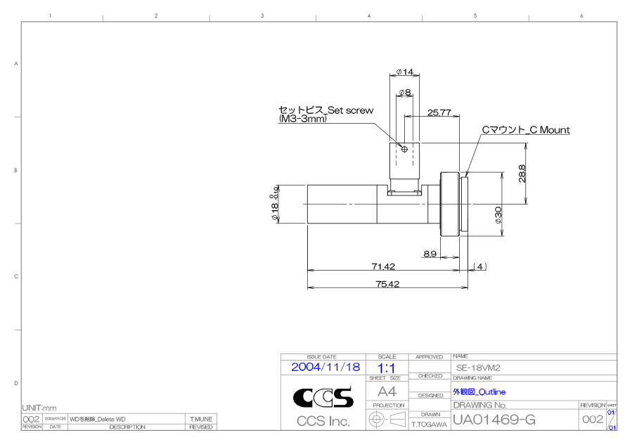 | 备注 | Coaxial type. The depth of field is obtained with 40 μm permissible circle of confusion. The resolving power was obtained at a wavelength of 550 nm. These specifications are numeric values based on optical design. Actual values will vary with physical factors such as the assembly accuracy. |